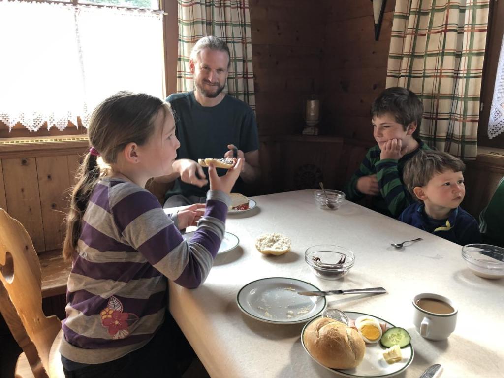 Den Abend lassen wir wieder erst bei einem guten Abendessen, heute frischer Salat aus dem Garten und dann himmlich leichten Kaiserschmarrn. Das Essen war bis jetzt immer ein Traum und allein deshalb ist die Unterkunft immer empfehlenswert. Anschließend sitzen wir noch ein wenig zusammen und reden. Früh gehen wir ins Bett, es war ein langer Tag.