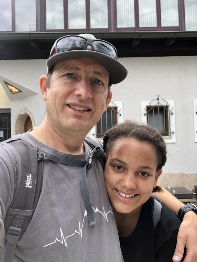 Ab und zu bleiben wir kurz stehen, trinken einen Schluck und jedes brave Kind bekommt eine Süßigkeit…