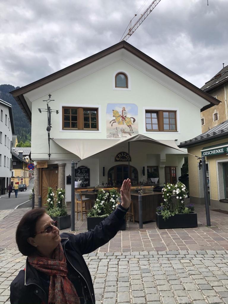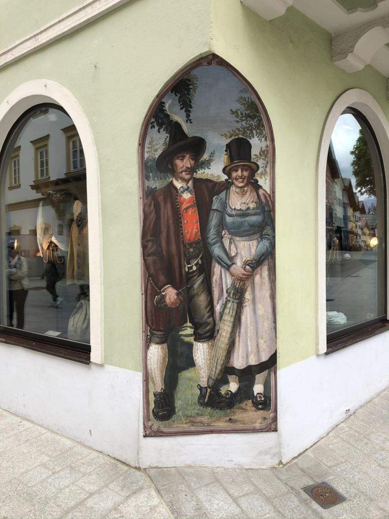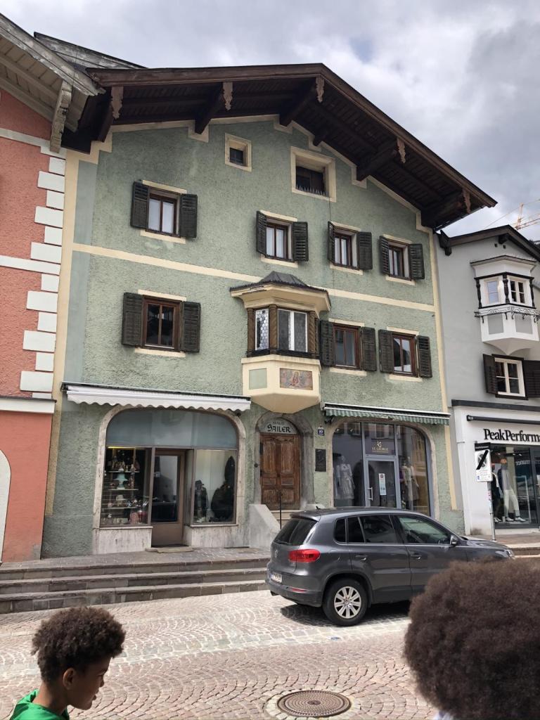 Die Reiseführerin macht einen guten Job, es ist sehr interessant. Nicht alles ist „Hautevolee“ hier in der Stadt der Reichen und Schönen. Es gibt auch ein ganz normales Kitzbühel abseits des Reichtums, und diesen schauen wir uns genauso an. Schöne Häuser überall, geschichtsträchtige Gassen und Gebäude (wie oben das ehemalige Grand Hotel)