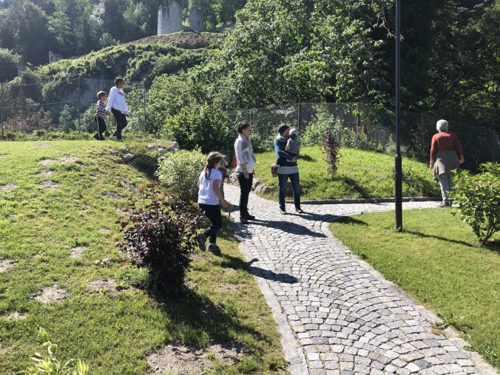 Die Kinder laufen wild herum, am Schlossanger. Dieser wurde in den letzten Jahren sehr schön hergerichtet und lädt zum Verweilen ein.