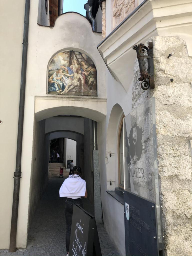 Die Häuserfasaden sind in bunten Farben gehalten, das erinnert mich sehr stark an die Innstädte, wie Innsbruck oder Braunau…