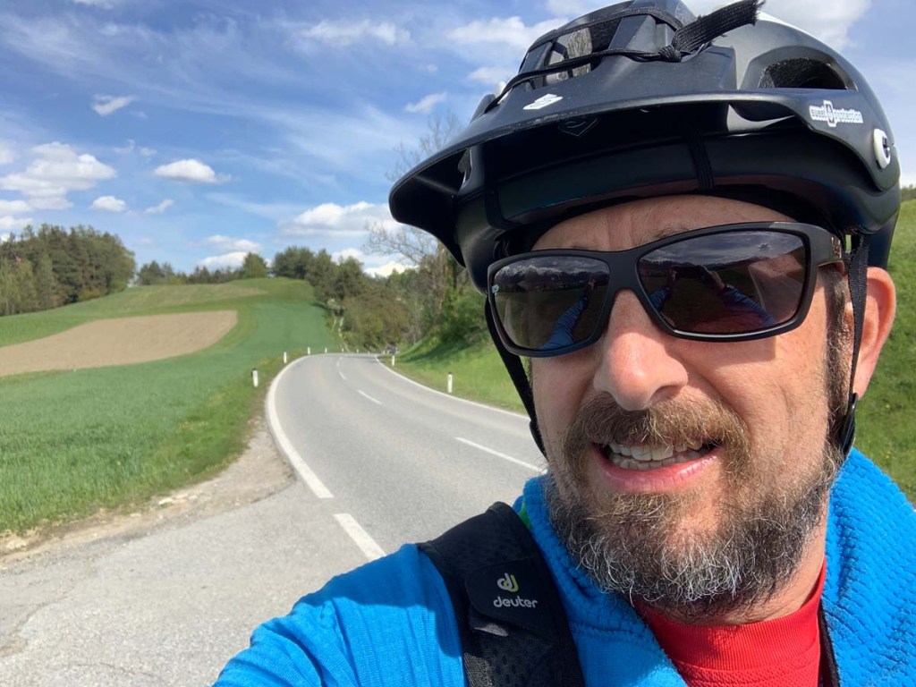 Über schöne Feldwege, teils asphaltiert fahre ich wieder retour gen Westen. War der Weg bis jetzt immer am Inn flussabwärts, merke ich nun, dass ich wieder gehen den Strom fahre… dabei merke ich weniger die Höhenmeter, sondern an den straffen Gegenwind, der mir den Bart zersaust.