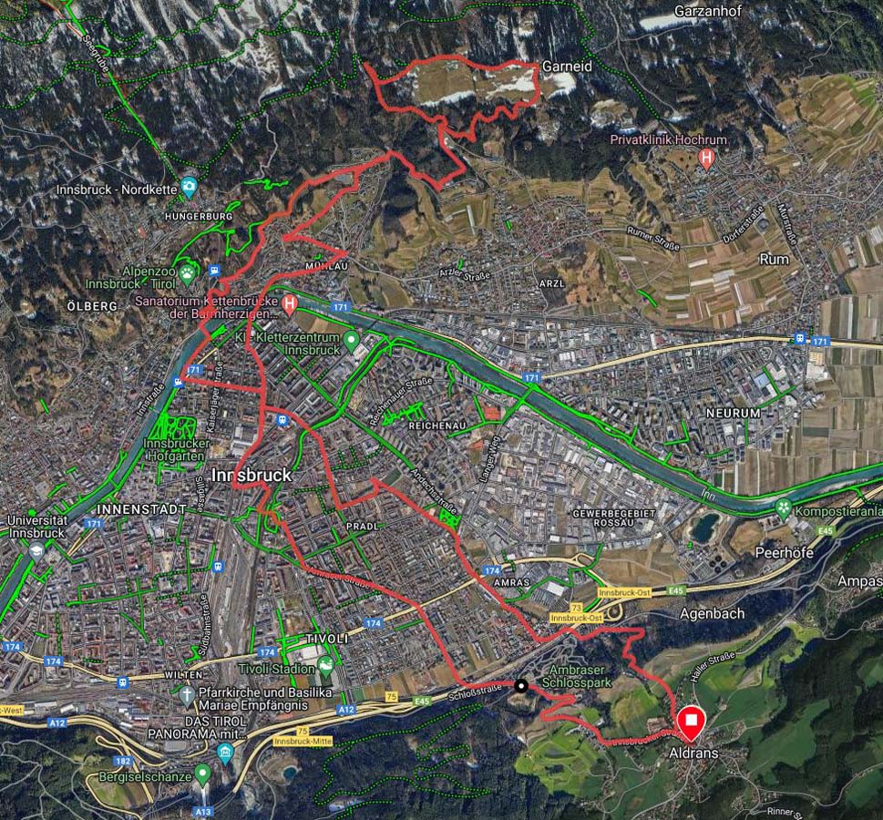 Letu ist unterwegs mal ein wenig unmotiviert, aber im Endeffekt schaffen wir sogar den Anstieg hinauf nach Aldrans und schauen auf eine stolze Runde zurück.