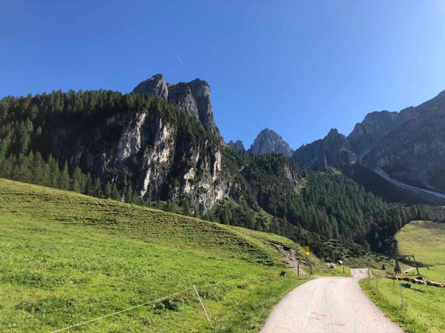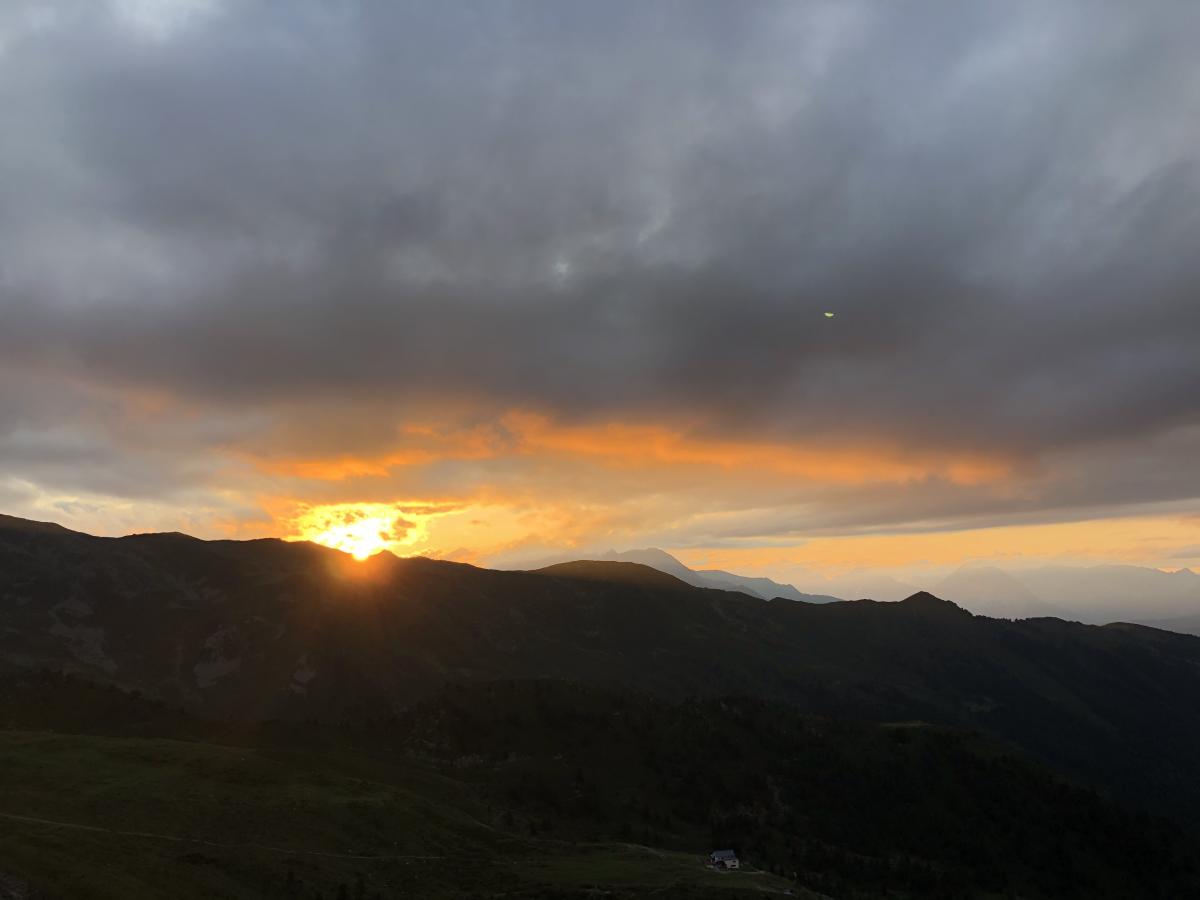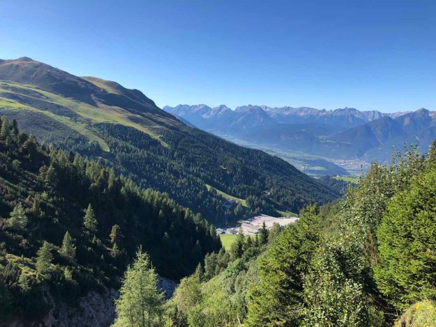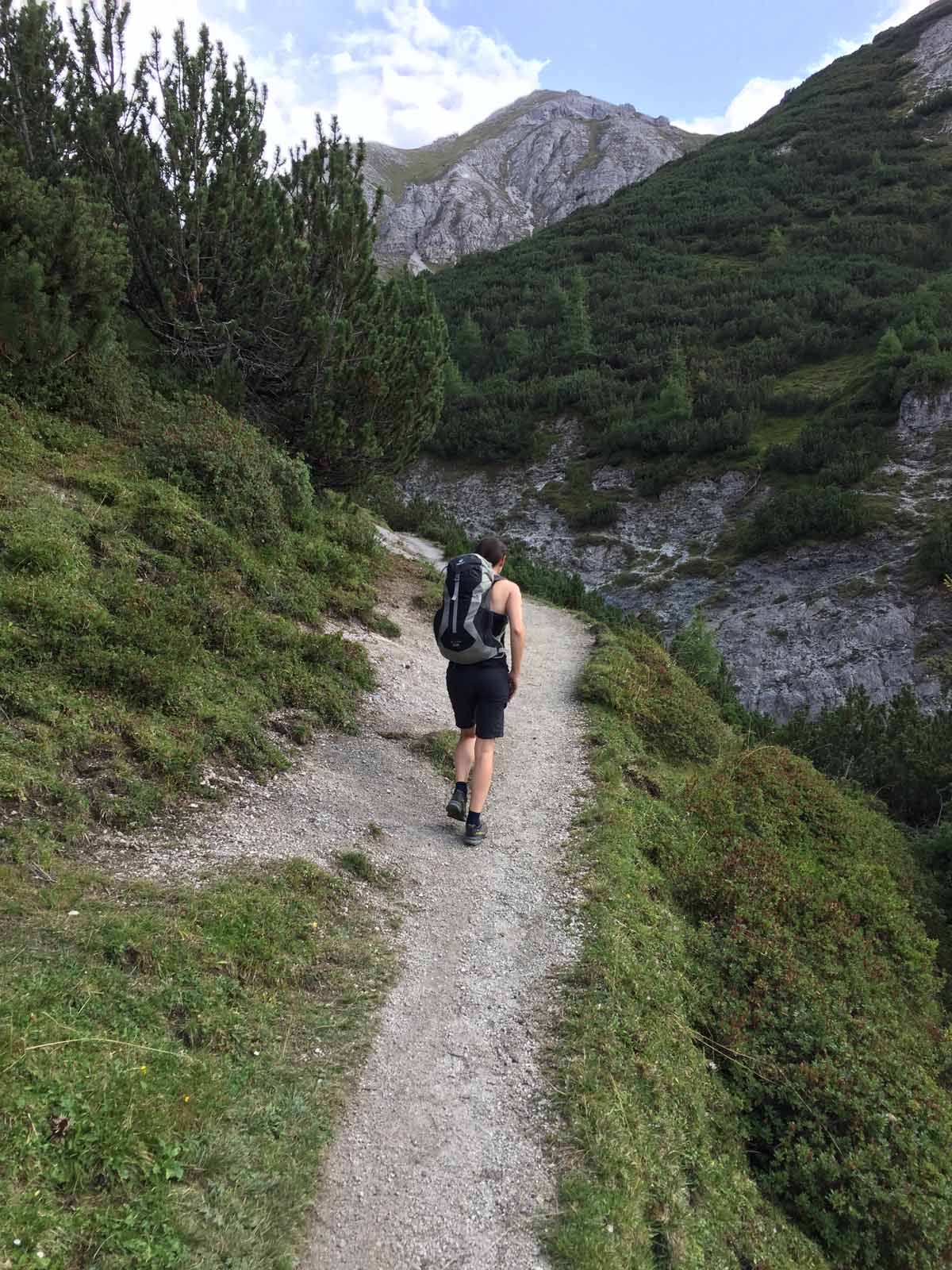 Der Abstieg ist kurzweilig, schon bald erreichen wir wieder das Halsl. Der weitere Weg zum Parkplatz belohnt uns noch ein paar Mal mit schönen Aussichten auf das Tiroler Land und auf die spannenden Wolkenspiele am Himmel.