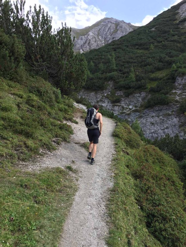 Am Halsl wird nochmals die Lage gecheckt, wir sind uns einig, dass das Wetter hält. Also weiter hinauf, den Steig. Dieser steilt nun ein wenig auf, es wird schottrig, aber trotzdem fein zu gehen. Kaum sind wir losgegangen, sendet uns Petrus einen Gruß, ein leises Donnergrollen aus dem Wipptal erinnert uns daran, das Wetter im Auge zu behalten.