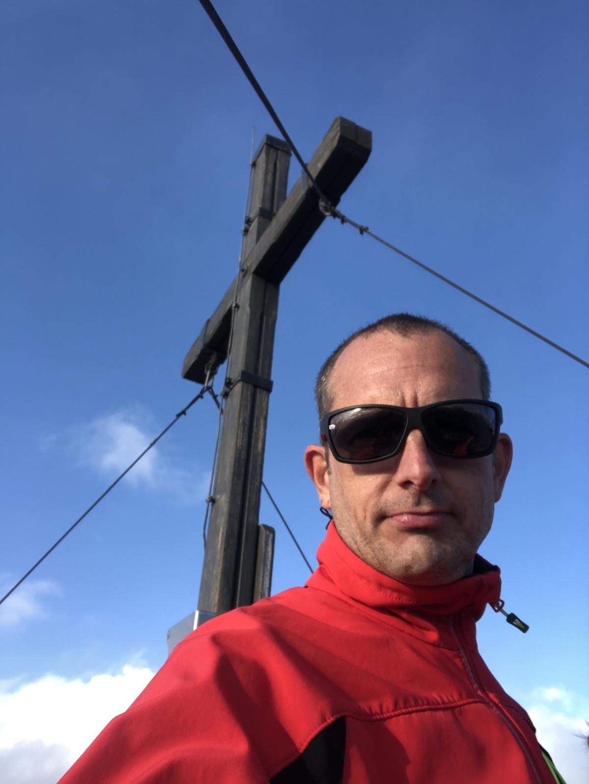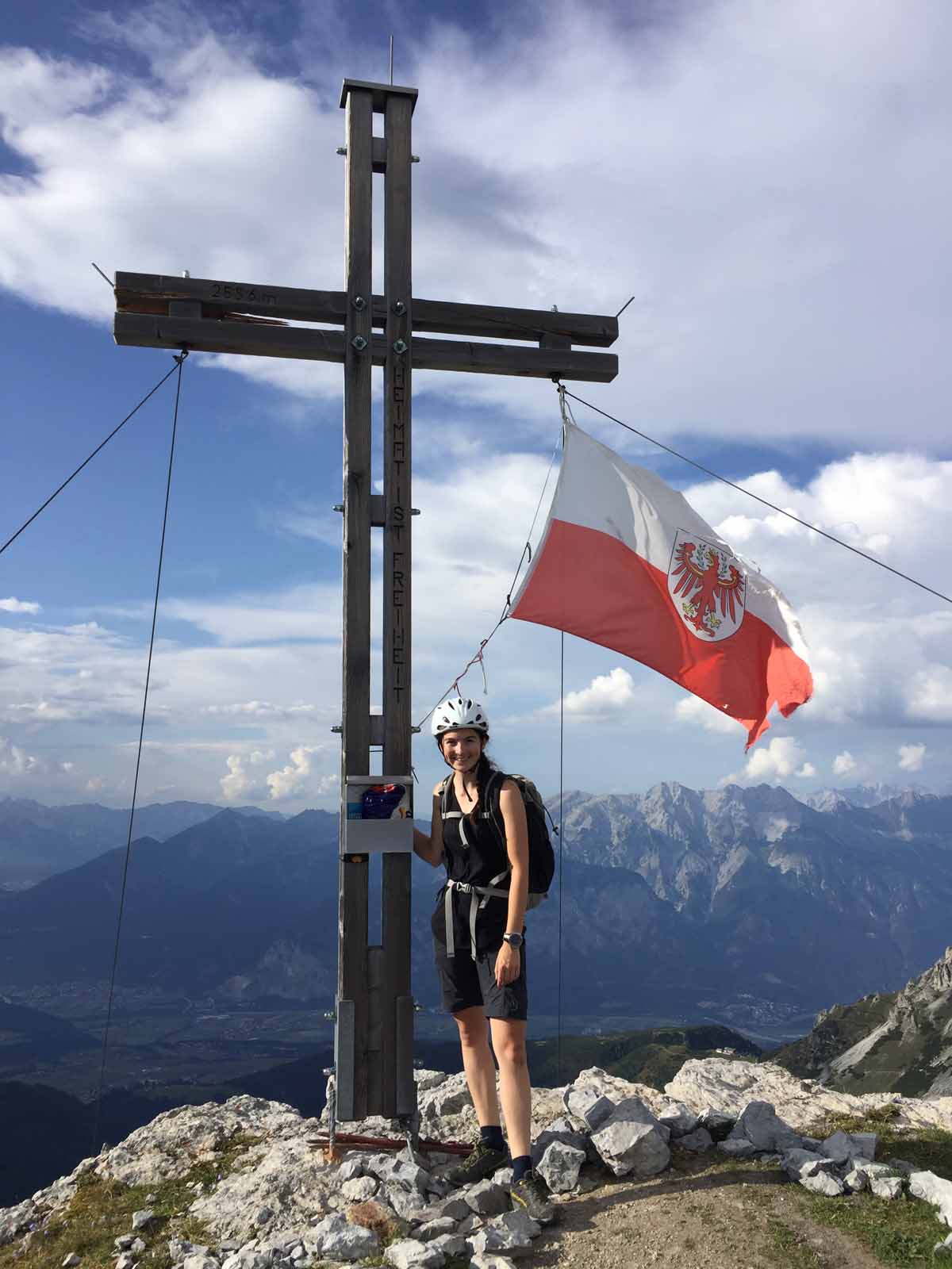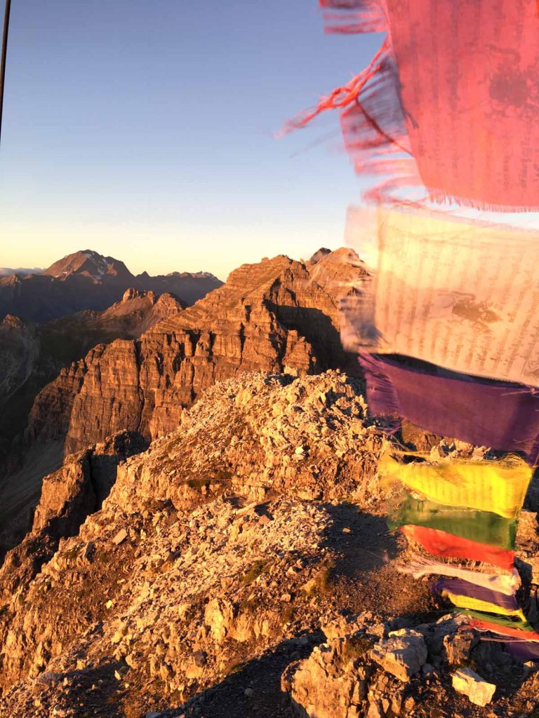 Eine Tiroler Flagge weht vom Gipfelkreuz, hier war ein Patriot am Werke…