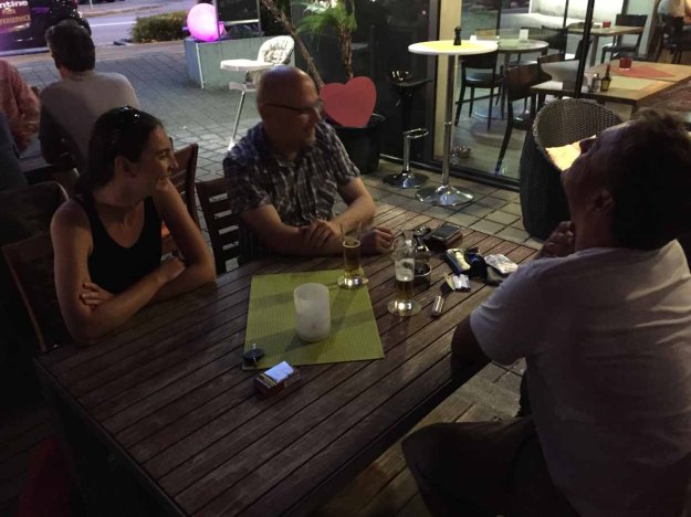 In Innsbruck, Tamara hat noch ein wenig Zeit bis zum Zug, kehren wir in der „Kantine“ auf ein Bier ein. Hier treffen wir noch zwei bekannte Gesichter, Spaß am Schluss der Tour ist garantiert.