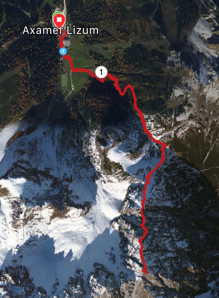 Wir starten am Parkplatz der Axamer Lizum, hinter dem unsäglich hässlichen, wenngleich fast schon legendärem Olypmiahotel geht’s auch gleich bergauf, Richtung Halsl (1.992m).