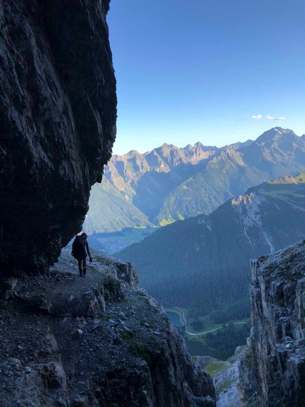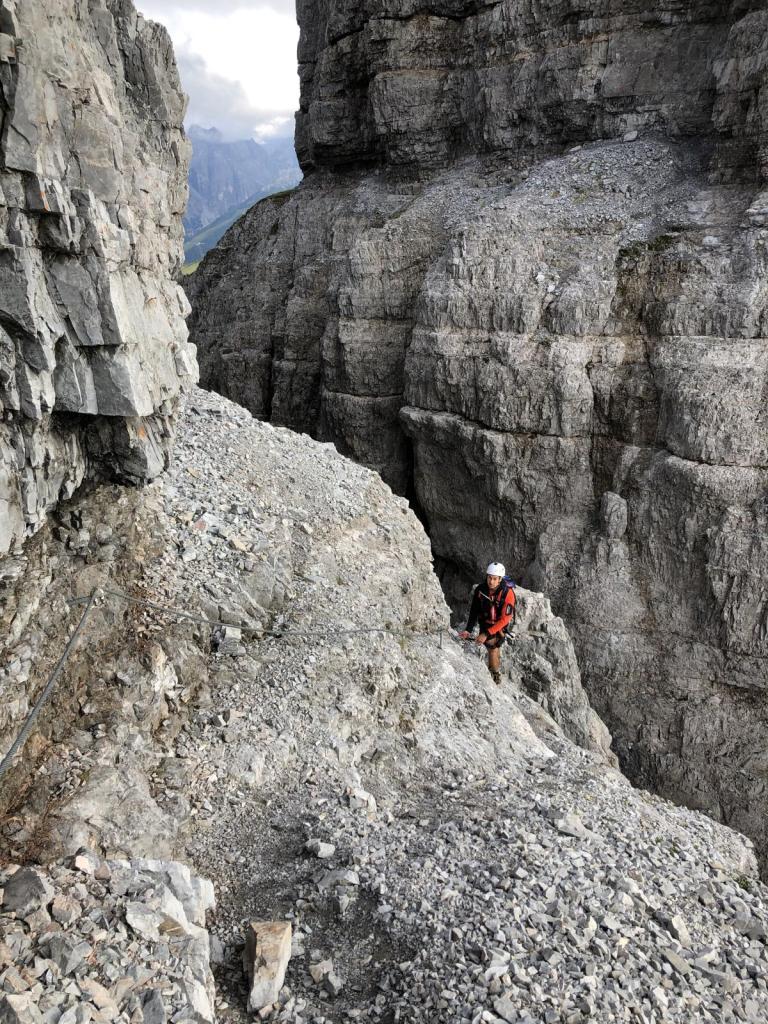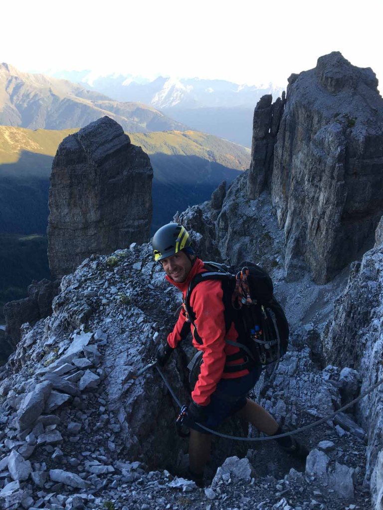 Nette Kletterstellen wechseln sich mit Gehstrecken in der wunderschönen Arena der Kalkkögel ab.