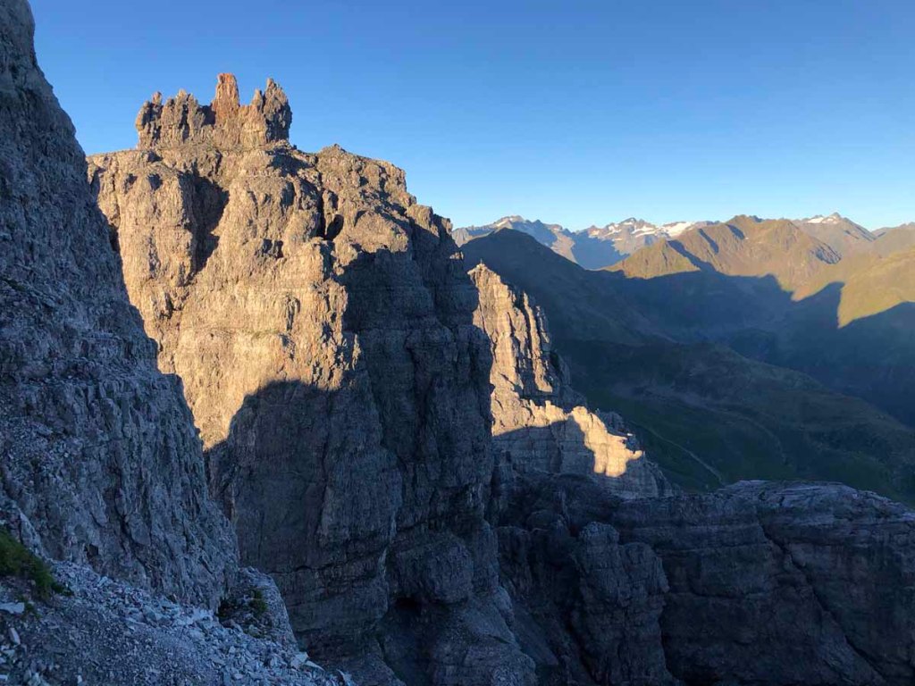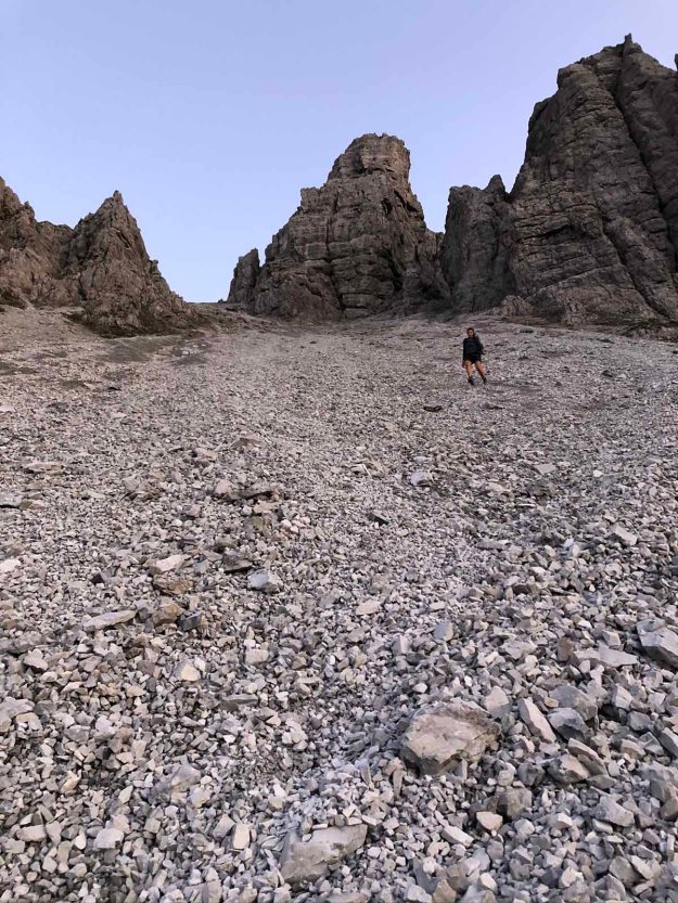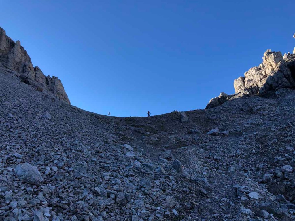 Ich genieße jeden Schritt in dieser urtümlichen Landschaft, die so gar nicht nach Nordtirol passen will. Überall Türmchen, Bänder, und natürlich viel Geröll…
