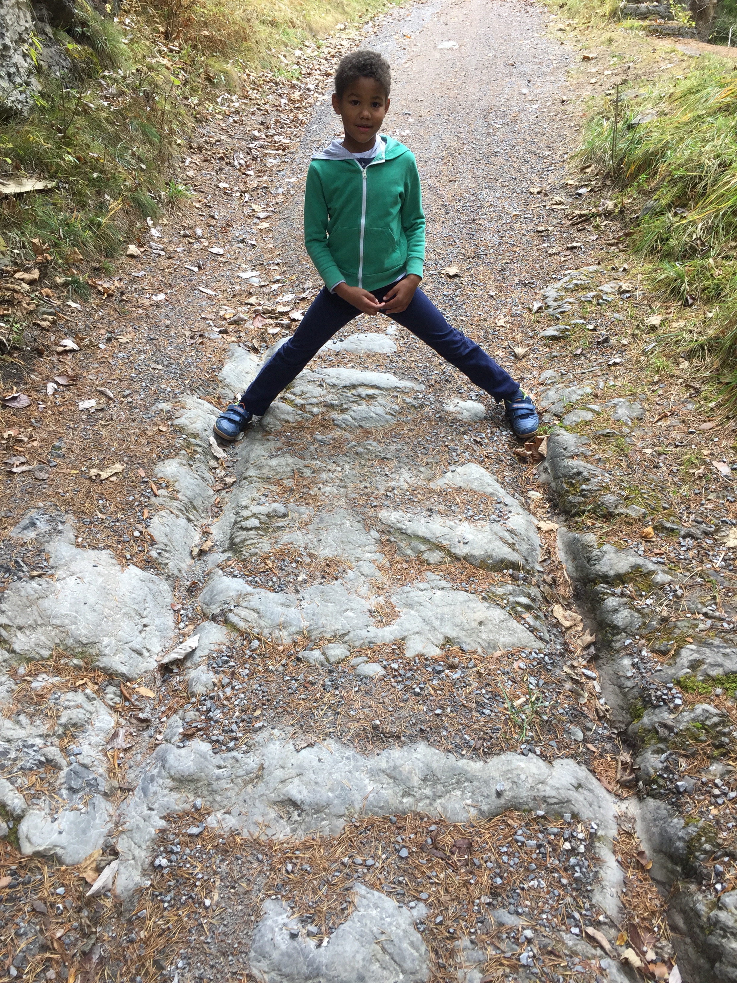 Der Abstieg von der Burg zur Highline ist schnell erledigt, die Kinder sind nun schon gespannt auf die Hängebrücke.