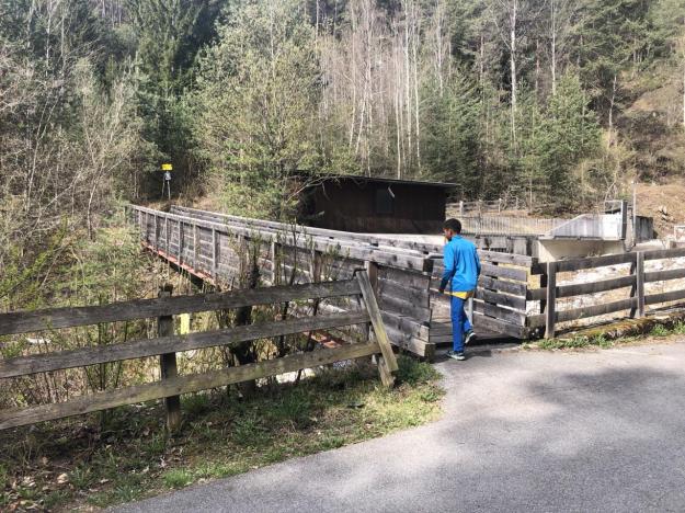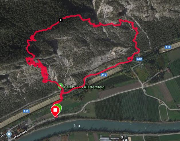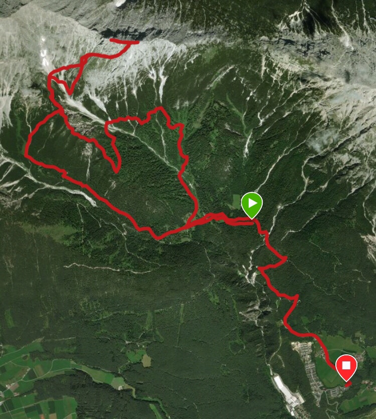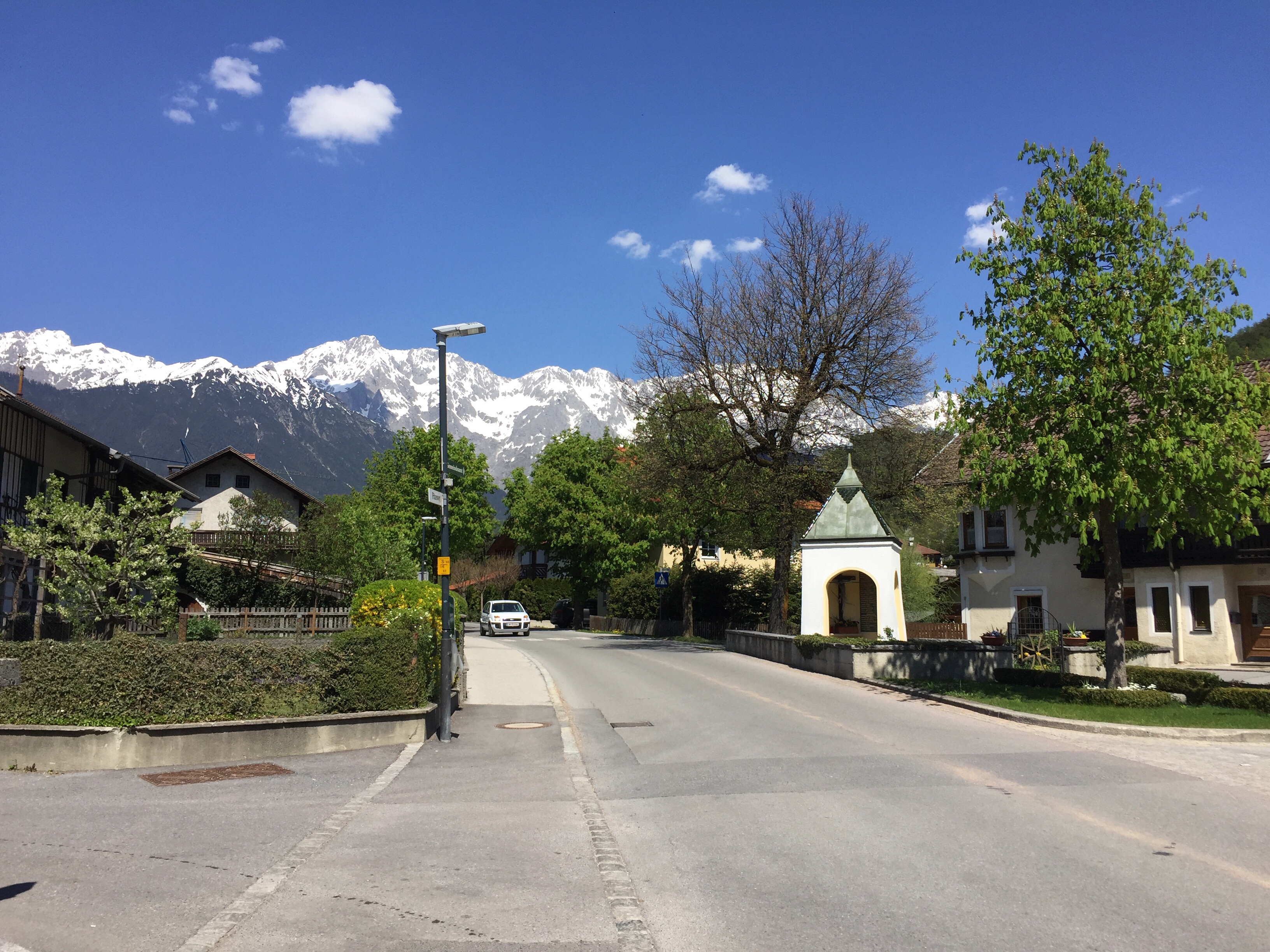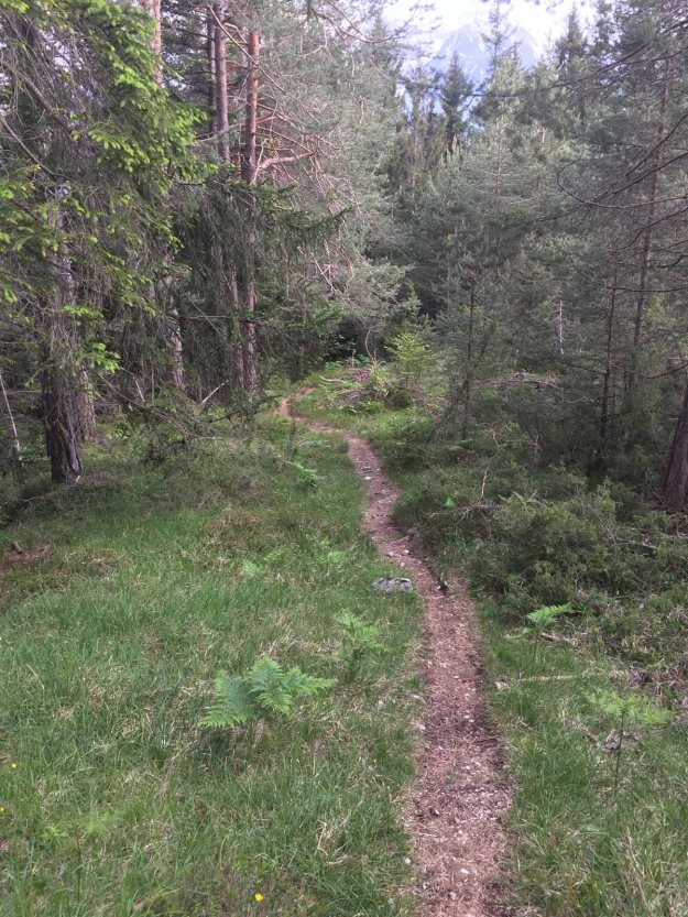 Wir starten hinter dem Thöni-Werk in Telfs, schon nach ein paar Metern ist keine Spur der großen Fabrik zu sehen…