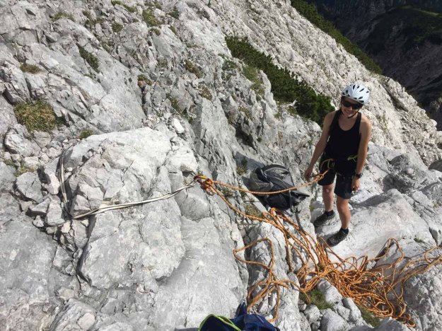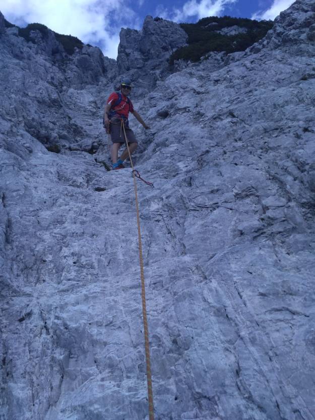 Endlich erreichen wir den neuen Teil des Steiges, die Holzstiege, die über die Felswand führt. Der Stieg wurde vor ein paar Jahren erst wieder reaktiviert, nachdem die alte Steiganlage zu gefährlich worden war.