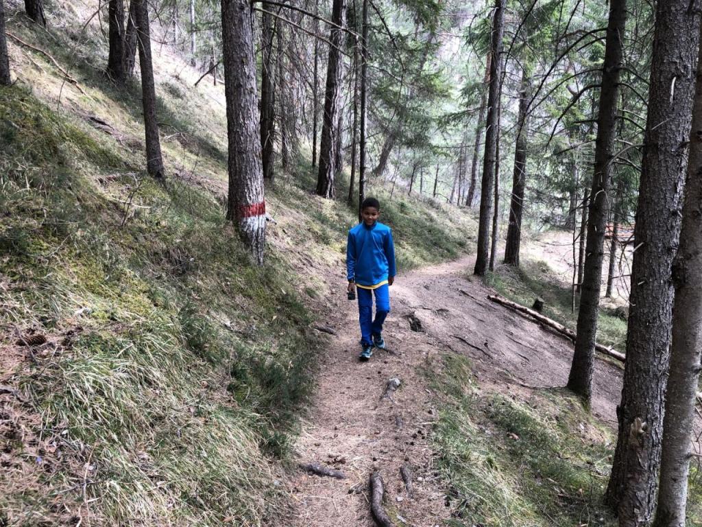 Beim Abstieg sammeln wir noch Geocaches ein, Letu nützt jede Gelegenheit, auf Baumstämmen zu balancieren.