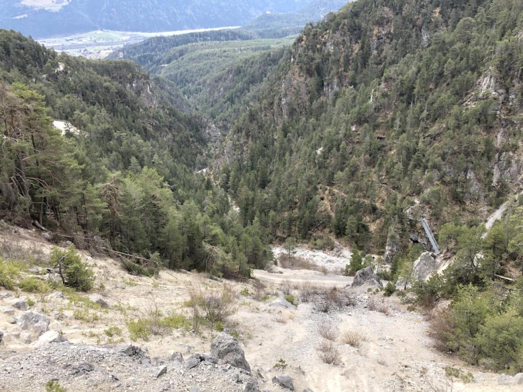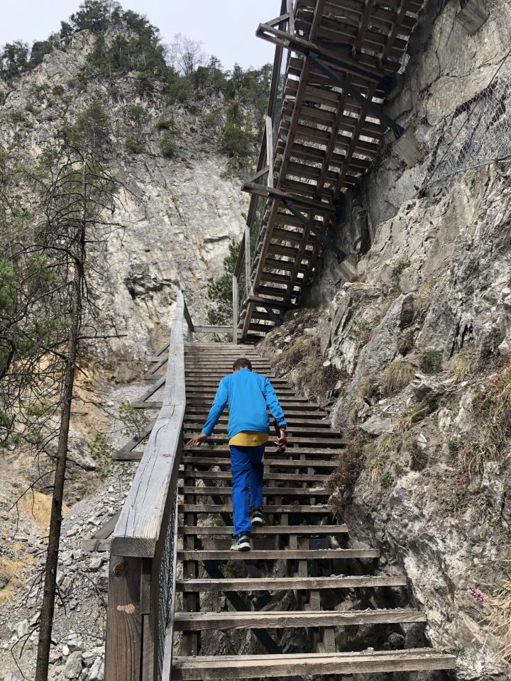 Der Ausblick von der Stiege ist spektakulär, sehr gut sieht man auf die schon zurückgelegte Wegstrecke.