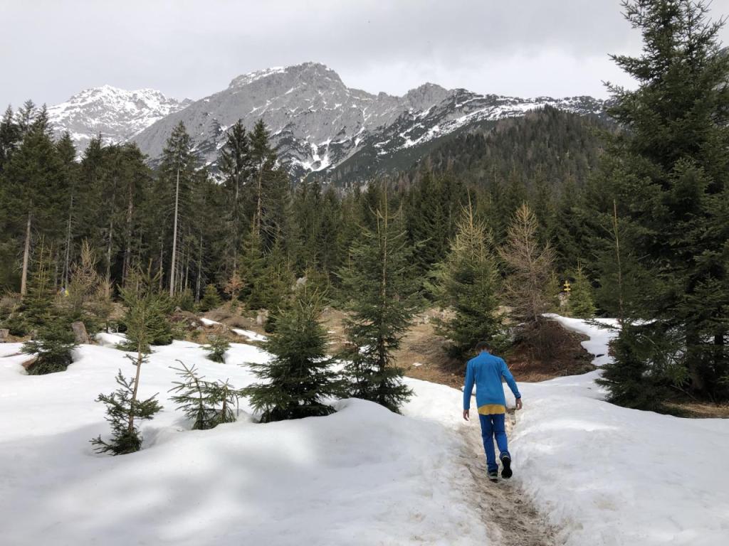 Wir verlassen die Schlucht und wandern über offene Waldstücke weiter. War am Anfang des Steigs noch Frühling angesagt, ist der Winter in der Höhe noch sehr präsent.