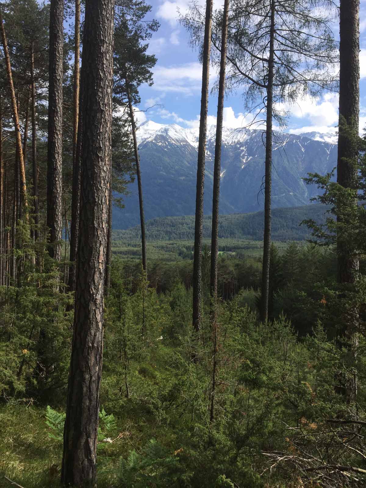 Wir starten hinter dem Thöni-Werk in Telfs, schon nach ein paar Metern ist keine Spur der großen Fabrik zu sehen…