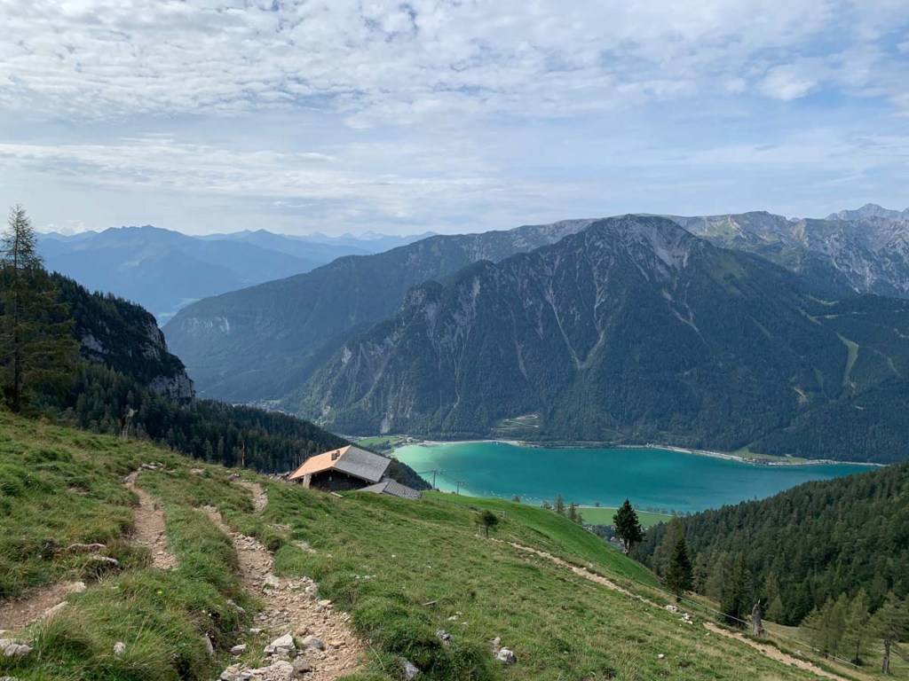 Papa hat sich auch entschieden, mitzukommen und fährt schon in der Früh von Reutte aus nach Aldrans, um dann mit uns weiter Richtung Achensee zu fahren.