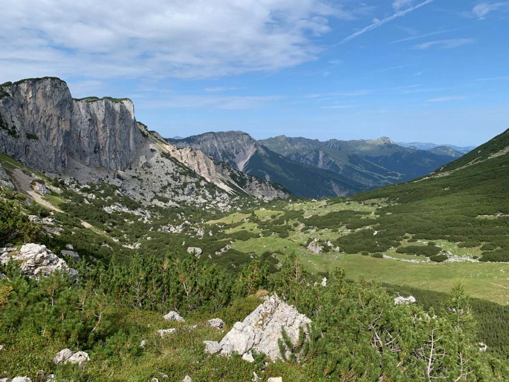 … dann wird es nochmals flach und ein unglaublicher Blick tut sich auf, überall nur Latschen, soweit das Auge reicht. Fast ohne Lücken, so wie ich das noch nie gesehen habe. Hier am Sattel des Gufferts ist ein „Latschenparadies“ sondergleichen entstanden…