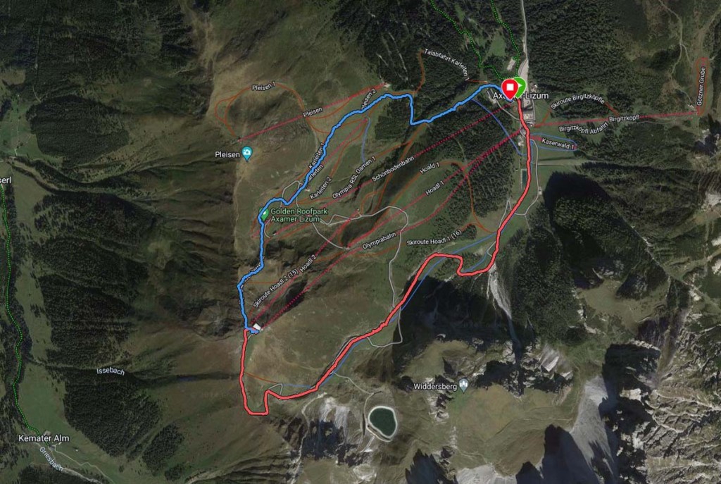 … leider müssen wir weiter. Vom Hoadl fahren wir über die Abfahrt zum Funpark, dort sammeln wir die Jungs ein, und fahren weiter zum Parkplatz. Zufrieden fahren wir nach Innsbruck zurück.