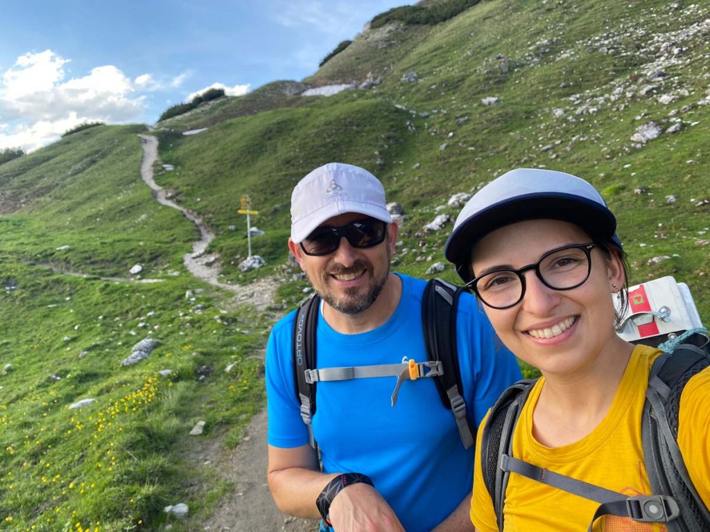 Wir wandern den gleichen Weg wieder hinunter in Richtung Hütte. Wir wollen ja doch noch kurz einkehren und auf den Gipfelsieg anstoßen.