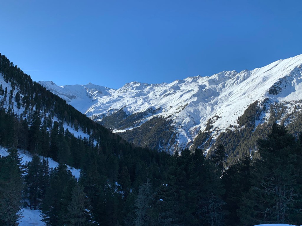 Die Aussicht wird wie gewohnt mit der Höhe immer besser. Die Kalkkögel sind jedes Mal wieder beeindruckend. Ich hoffe, im Sommer schaffe ich hier die eine oder andere Bergtour.