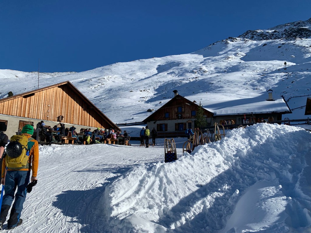 Die Hütte liegt gut, wir finden einen feinen Platz in der Sonne. Das Personal ist sehr freundlich, gleich werden wir bedient und wir fühlen uns sehr willkommen.