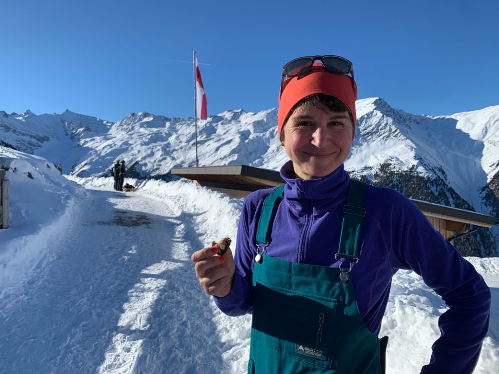 Schließlich erreichen wir das Gipfelkreuz und das riesengroße Hoadlhaus. Wir haben beschlossen, den Tag und die Skitourensaison gemütlich ausklingen zu lassen.