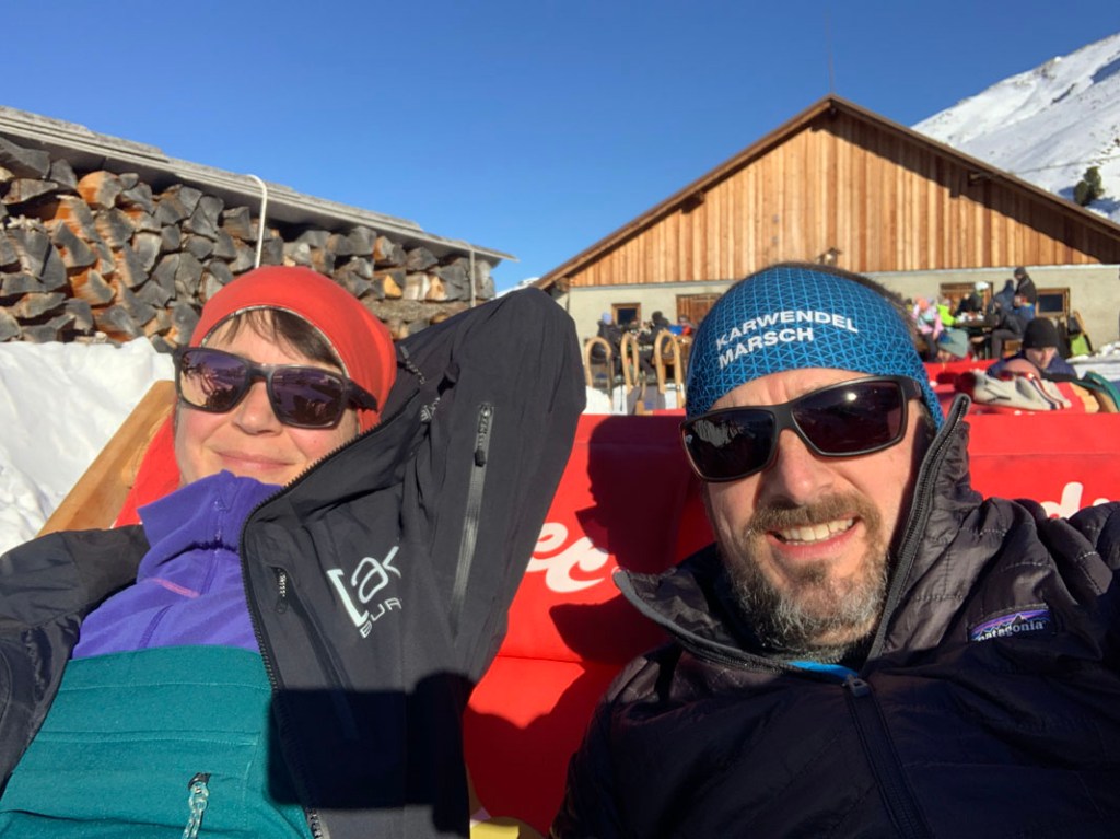 Wir setzen uns in die „Lizumer Liegestühle“ und stoßen auf eine tolle Saison an. Die Sonne lacht vom Himmel, nur eine kleine, lästige Wolke verdeckt immer wieder die Sonne.