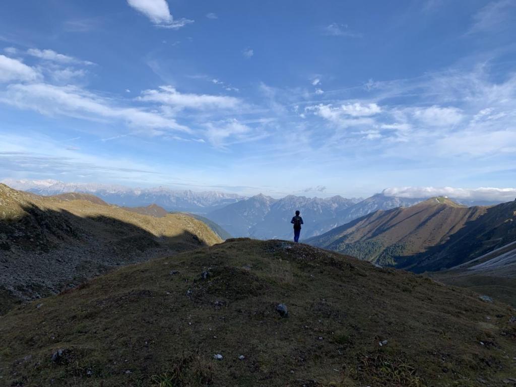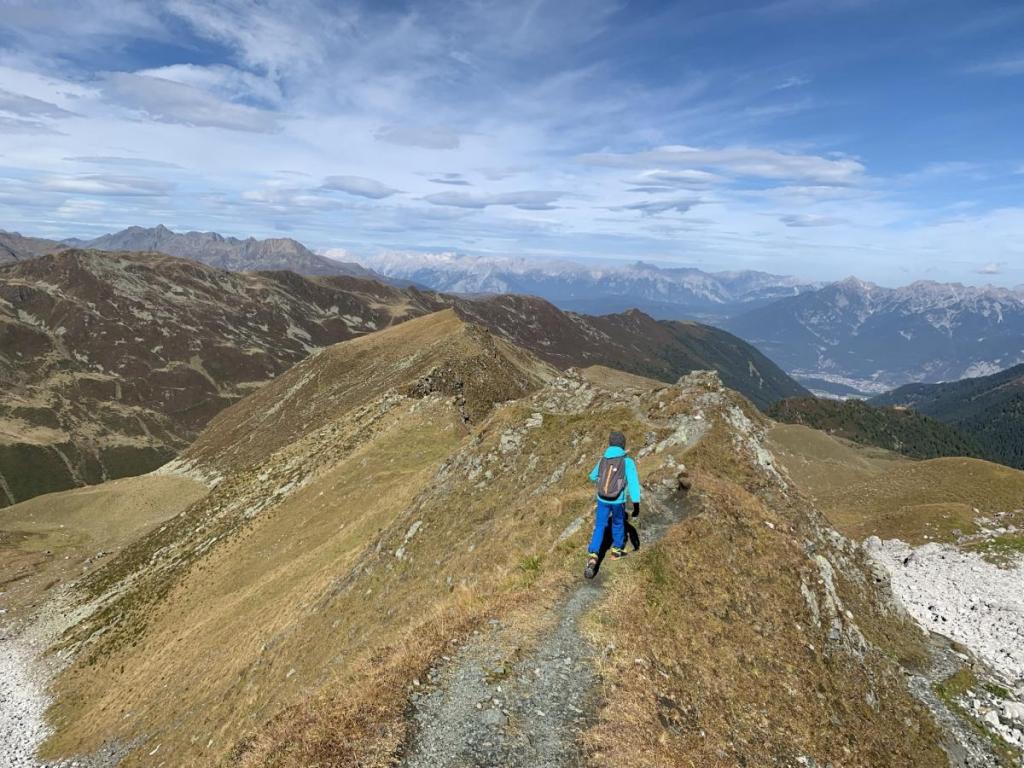 Wir machen eine kurze Pause und genießen die Rundumsicht, Inntal, Kalkkögel, Stubaier, Sellrainer Berge, Karwendel… es fehlt der Platz, alle aufzuzählen.