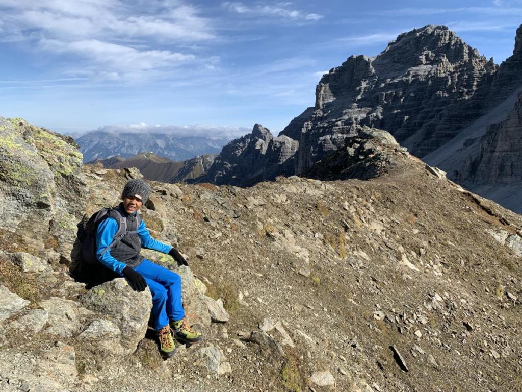 Wir genießen den Ausblick, doch ohne Sonne wird es gleich kühl. So machen wir uns an den Abstieg.