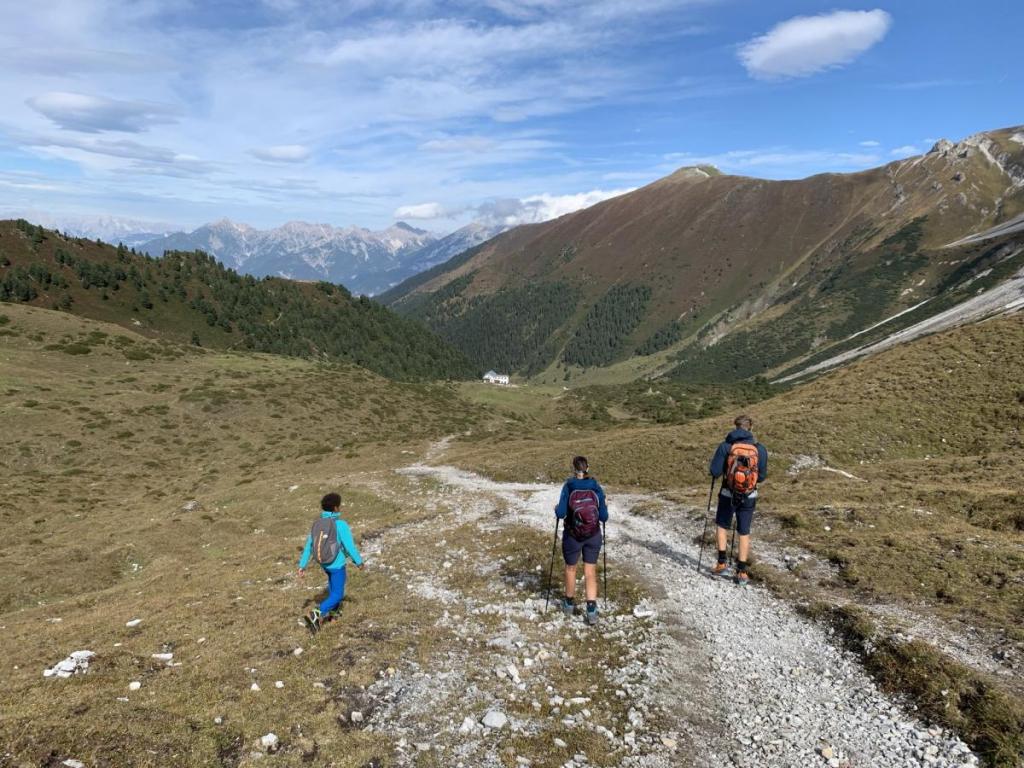 Bald sind wir wieder vereint und wandern über die Adolf-Pichler-Hütte hinab zur Kemateralm.