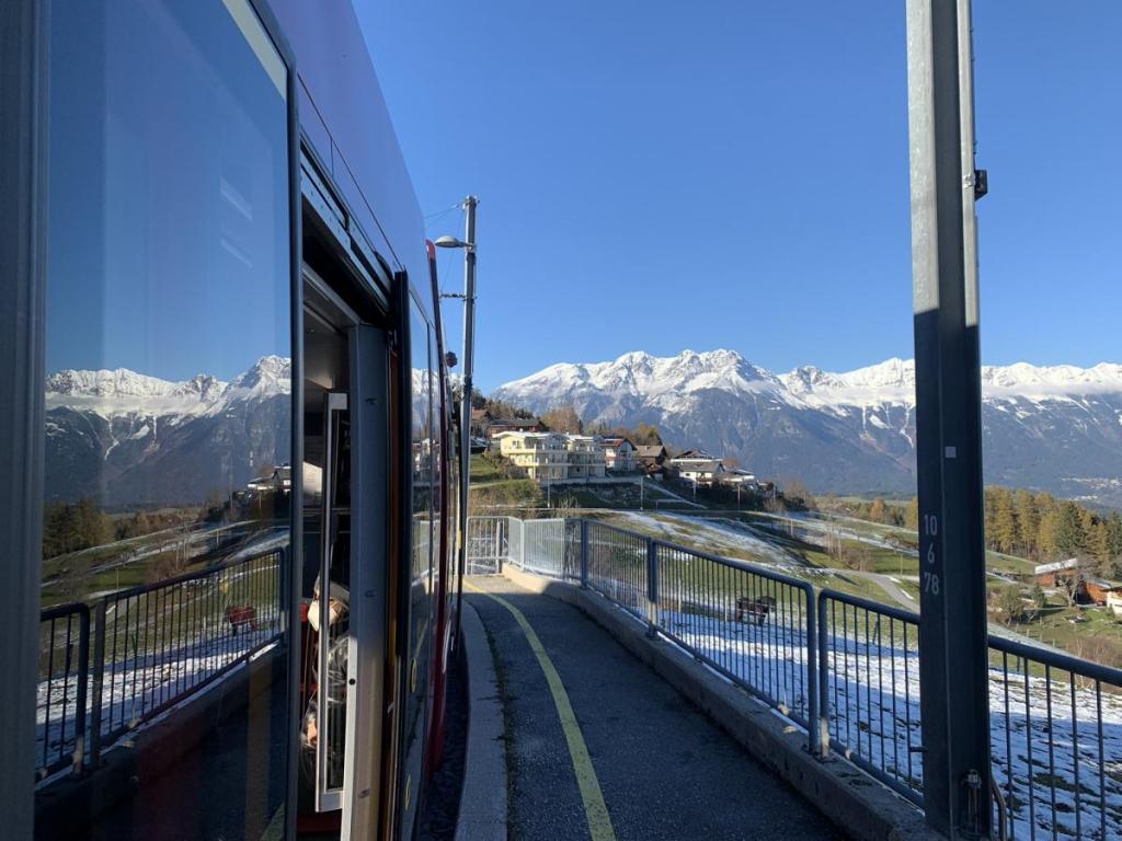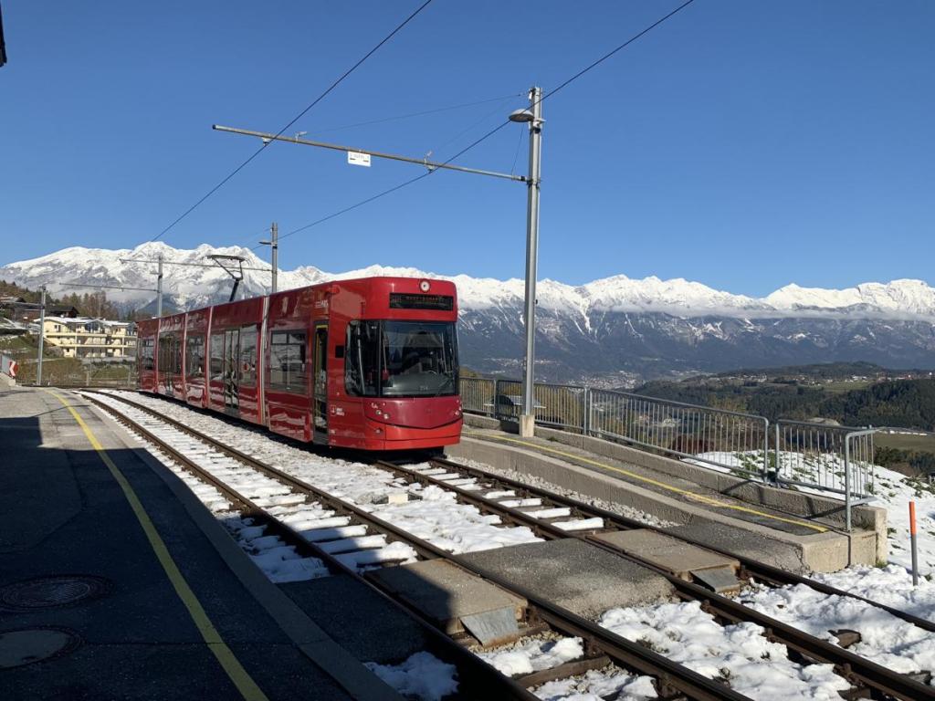Beim Einsteigen in die Bahn fällt mir nochmals die wunderschöne Silhouette der Nordkette auf, die sich auch in der Fensterscheibe der Bahn spiegelt. Eine wunderschöne, aber auch kühle Wanderung, die ich im Sommer auch mal gerne machen würde…