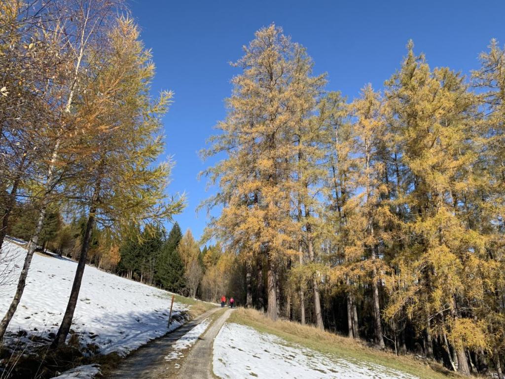 Der Forstweg durch die wunderschönen Lärchenwäldern ist allerdings gut zu begehen. Und der Weg ist wirklich einfach gehalten. Das merkt man auch an der Frequenz der Besucher…