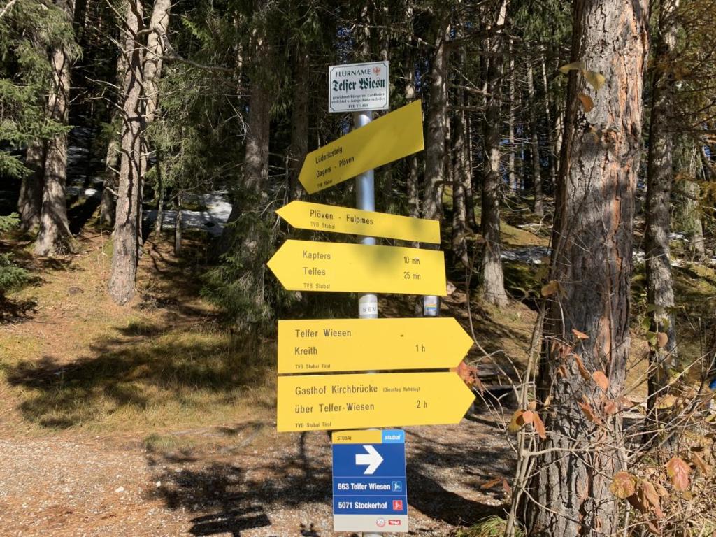 … kurz danach verzweigen die Wege, unsere Richtung ist nun zum „Gasthof Stockerhof“. Ein Schilderwald weist uns ein.
