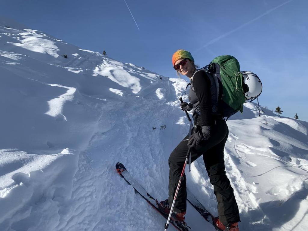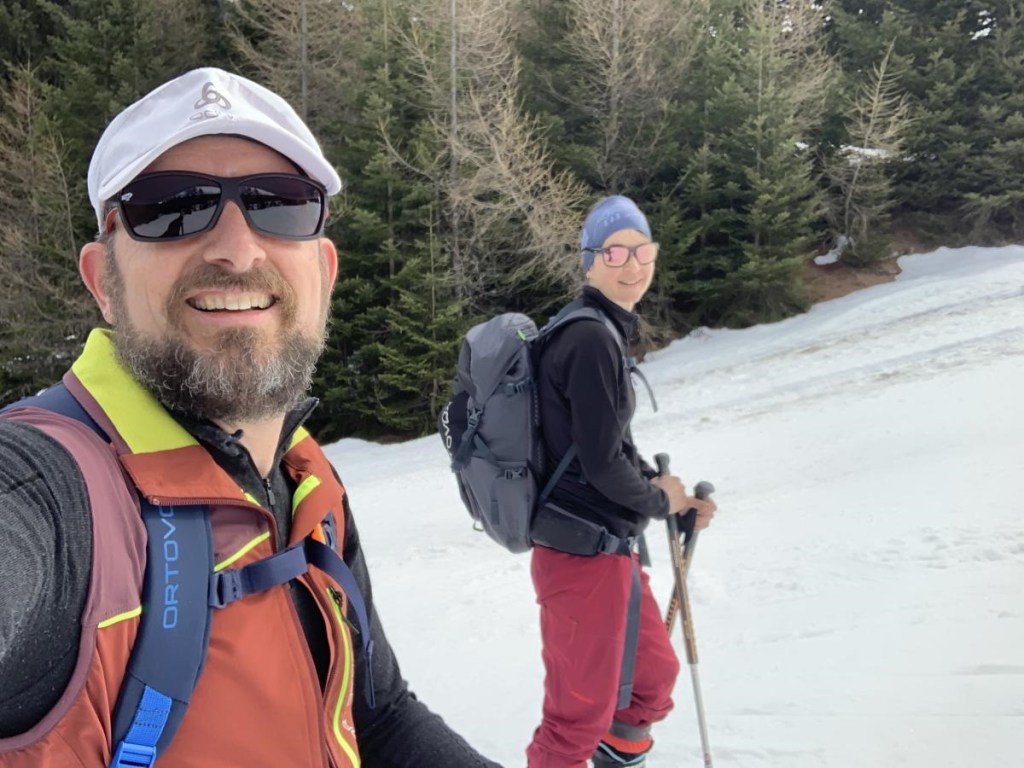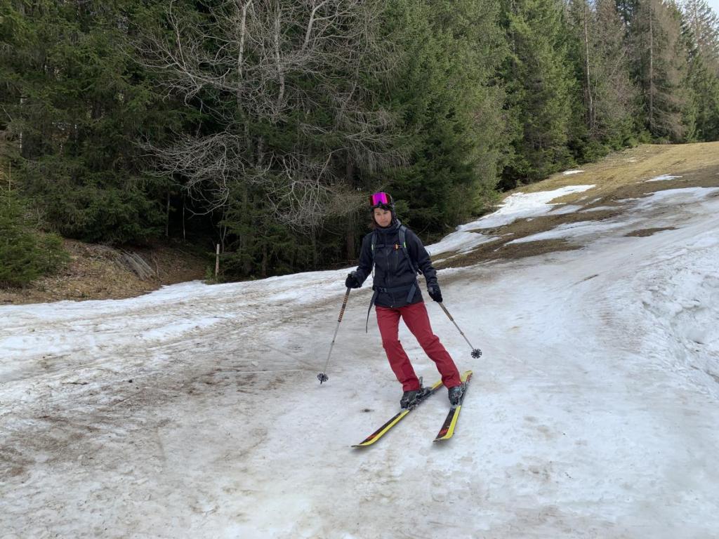 Nach einer kurzen Trageststrecke können wir die Ski anschnallen, zwischenzeitliche kurze schneefrei Stellen bewältigen wir in „tappender“ Manier.