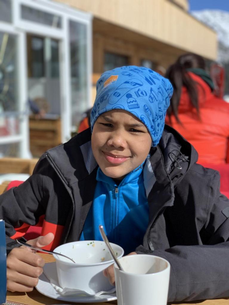 Bei so viel Lifthopping braucht es mal eine Pause am Talboden. Im „Sonne&Schnee“ auf der Terrasse genießen wir die Frühlingssonne und stärken uns…