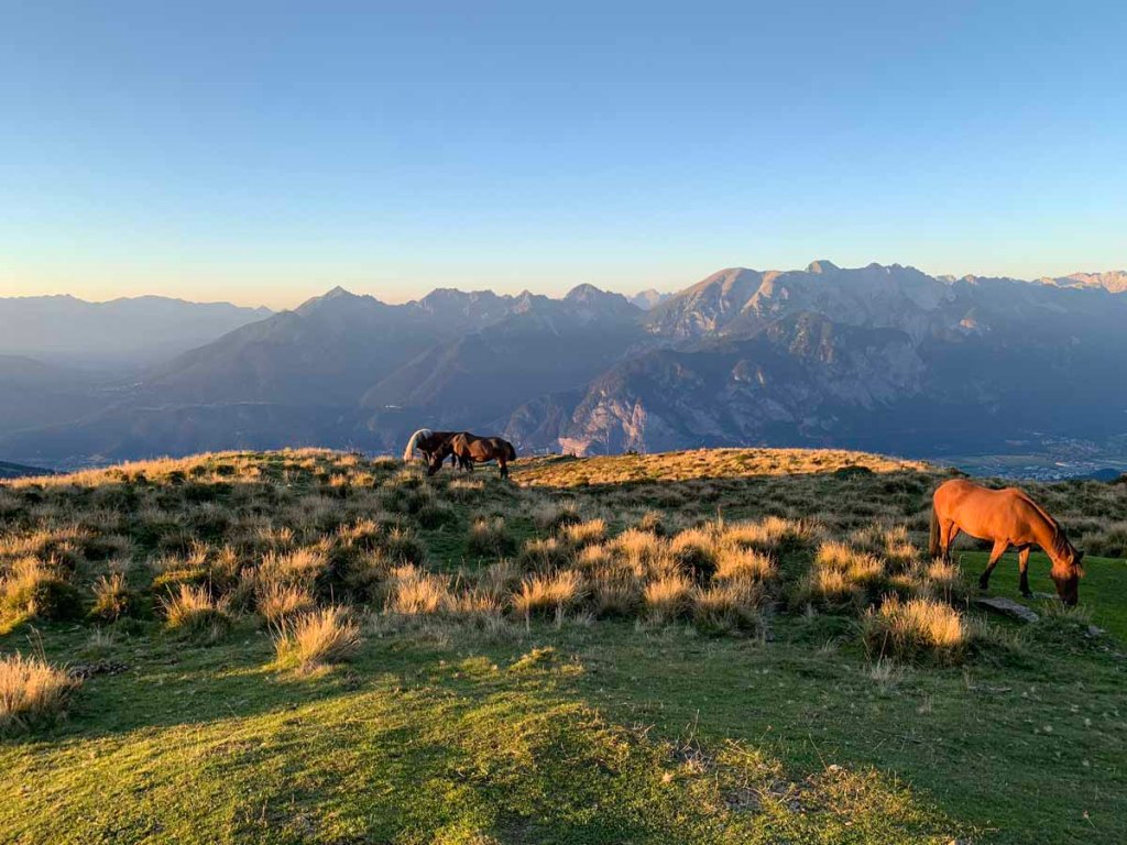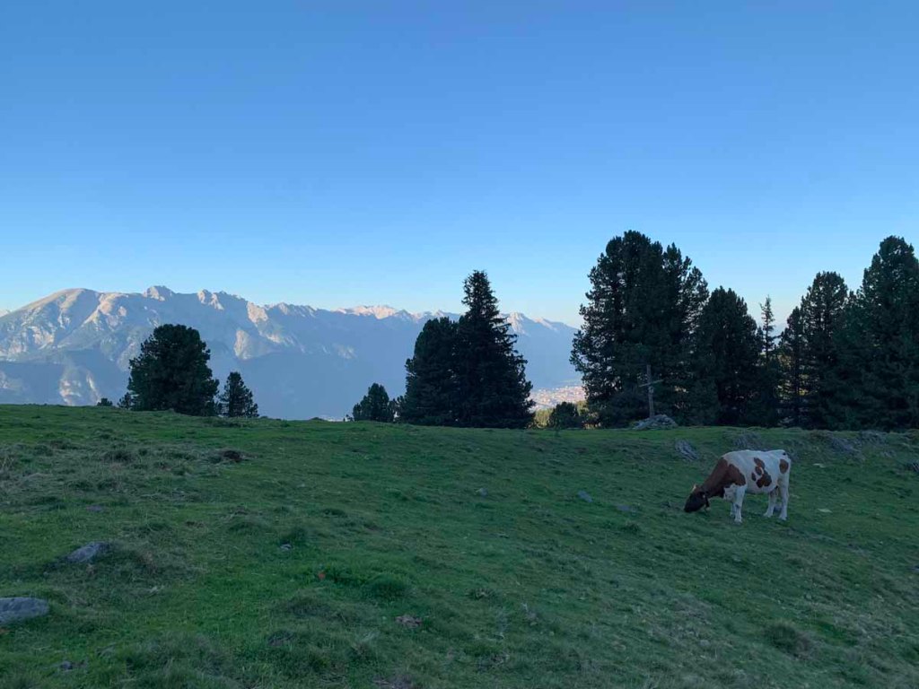 Oben auf Salfeins sind nun die Kühe den Pferden gewichen, die hier eine kaiserliche Loge über dem Inntal ihr Eigen nennen.