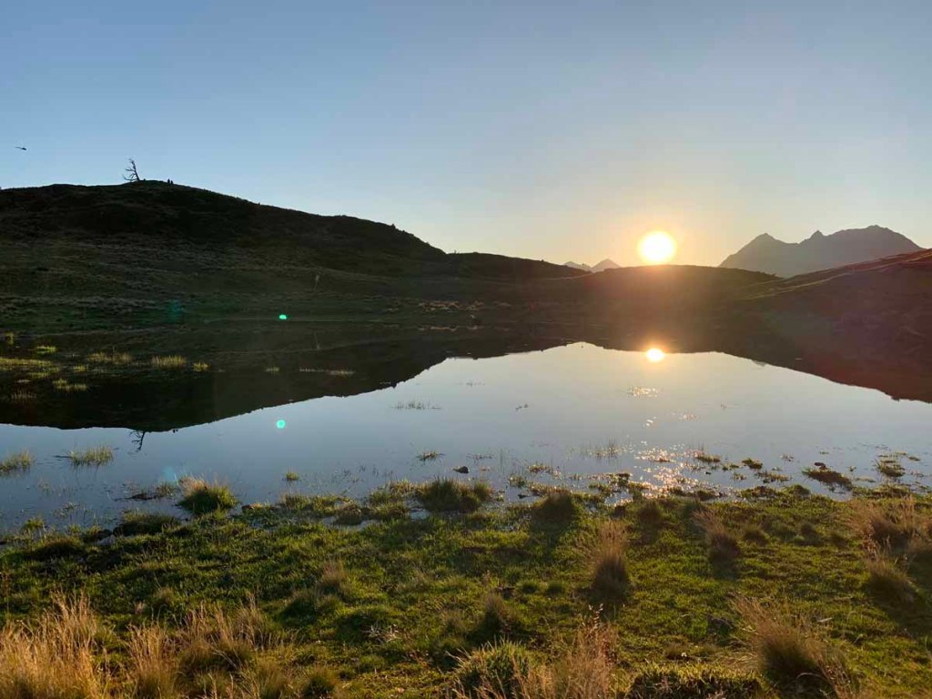 Erst kurz vor dem Seejöchl (2.518m) bricht der Feuerball durch und wärmt unsere Gesichter. Welch eine Wohltat…