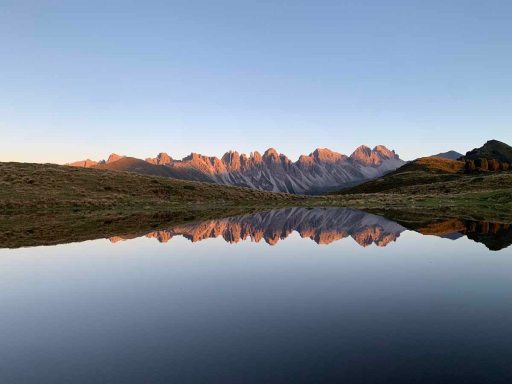 Und dann ist der Zeitpunkt gekommen, das berühmte Foto (ich sage nur Insta-Spot) zu schießen. Die Bedingungen passen heute wirklich, Sonne, wolkenloser Himmel, kein Windchen kräuselt den See… wie bestellt, denke ich mir!