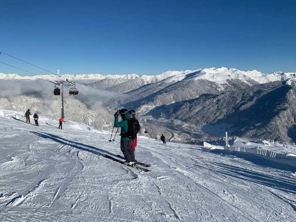 Im Skigebiet selber hält sich der Andrang dann doch in Grenzen, beziehungsweise verteilt sich gut auf die verschiedenen Pisten. Es ist total fein und entspannt…