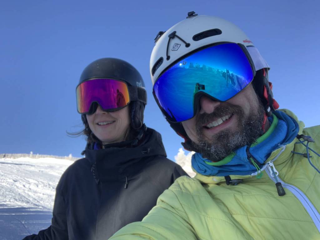 Biggi und ich genießen die Abfahrten und das wunderschöne Wetter…