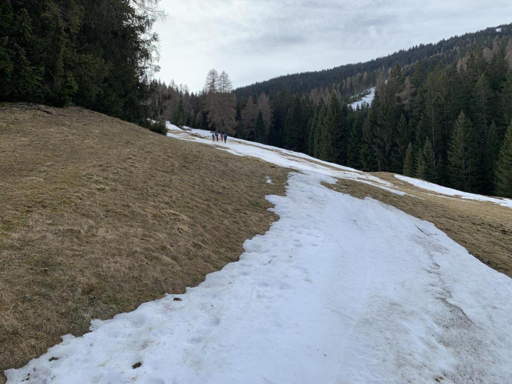 Zum Gehen ist es fein, ein wenig seifig, aber nicht eisig. Die Rodelbahn ist natürlich offiziell geschlossen und auch die Alm hat heute nicht offen…
