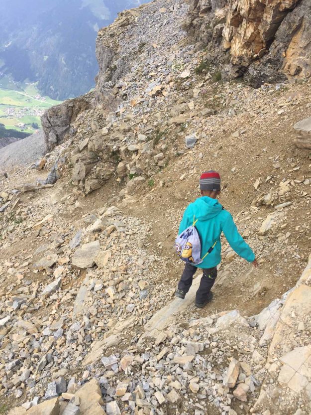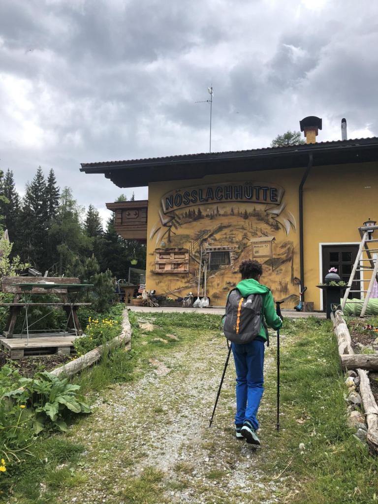 Nachdem wir uns satt gesehen haben, wandern wir den fast gleichen Weg wieder ins Tal. Bei der Nösslachhütte machen wir noch eine kurze Pause und gönnen und einen Kuchen. Nichts los, in diesem schönen Gasthäuschen. Auf Nachfrage meint die Kellnerin, das liege daran, dass der Brenner noch geschlossen ist… und das Wetter auch nicht so gut ist.