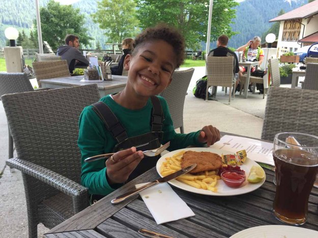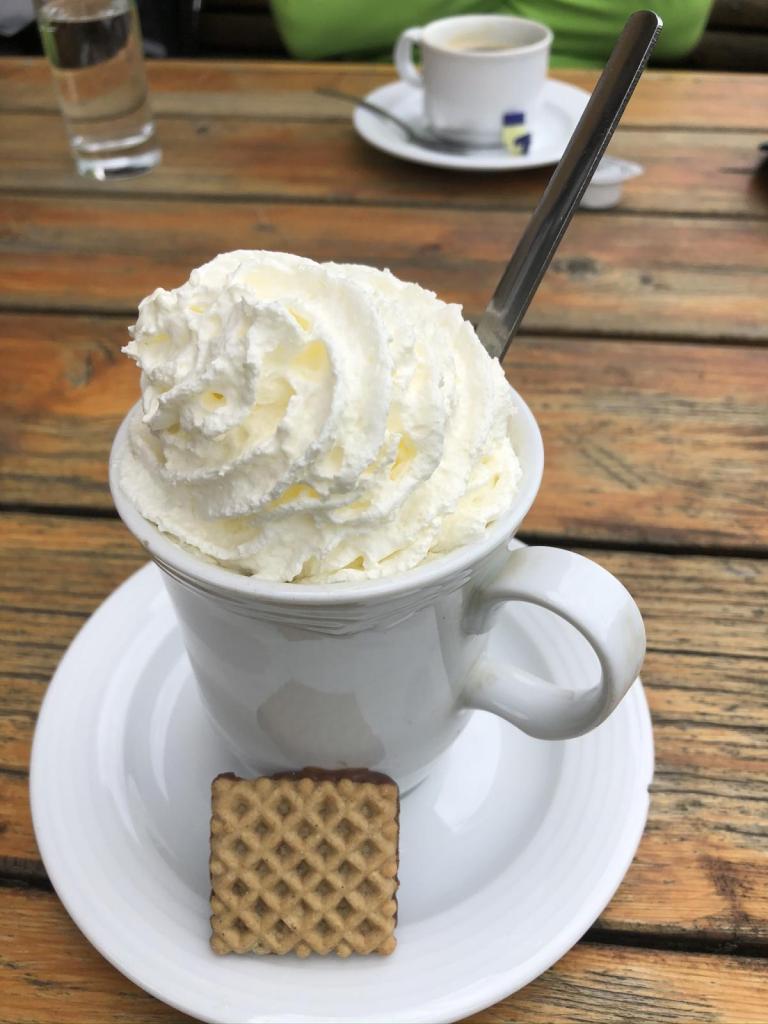 Die Stärkung ist auf jeden Fall wunderbar und wir genießen die Umgebung von der Sonnenterasse aus… auch wenn sich Diese nicht immer zeigen will. Dafür kann Letu von der hohen Kanzel aus unter uns die Kühe beobachten…