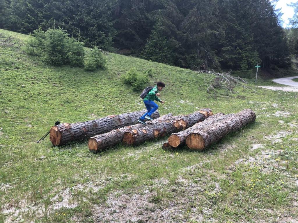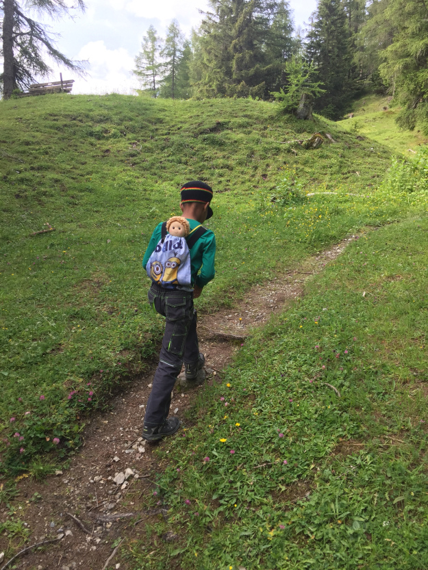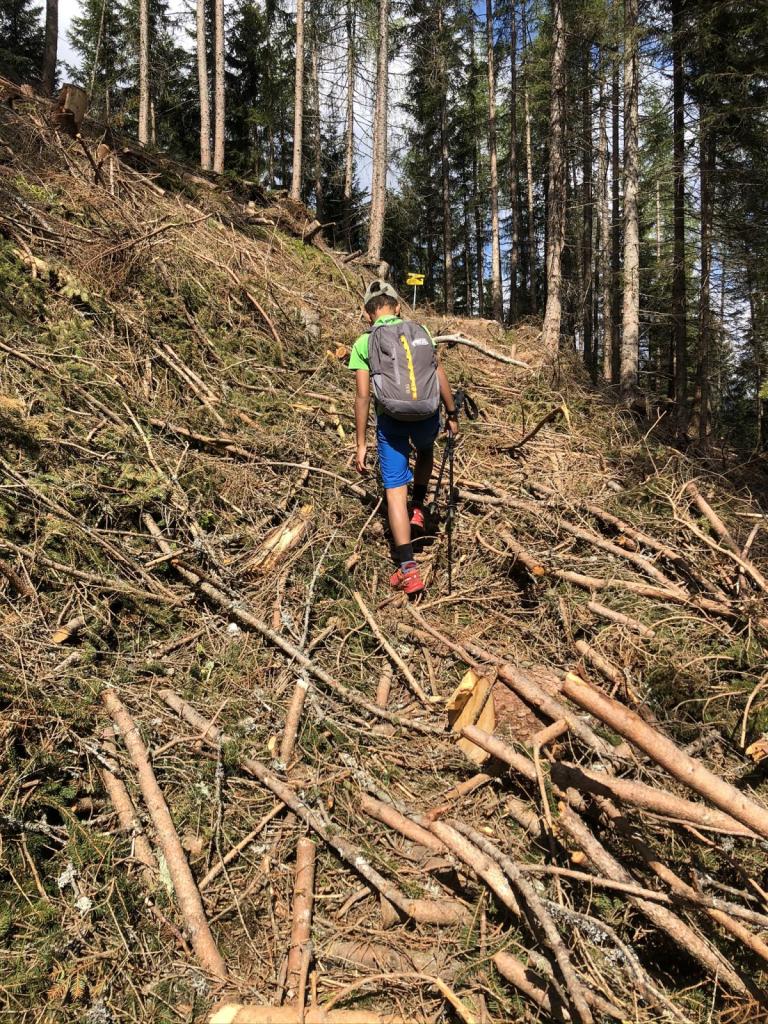 Schlussendlich wandern wir wieder retour zum Wanderparkplatz, unterwegs findet Letu immer wieder neues „Spielzeug“. Für mich lustig zum zuschauen…