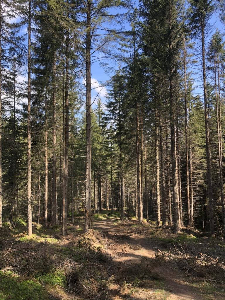 Wir starten am Parkplatz in Hagaten, und folgen längere Zeit einen Forstweg. Immer wieder sind Info-Tafeln aufgestellt, die über die früheren Bergbautätigkeiten informieren.