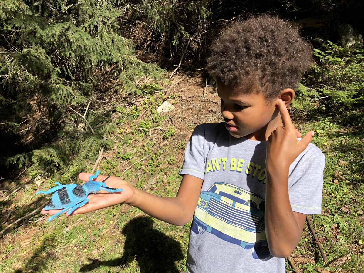 Schlussendlich wandern wir wieder retour zum Wanderparkplatz, unterwegs findet Letu immer wieder neues „Spielzeug“. Für mich lustig zum zuschauen…