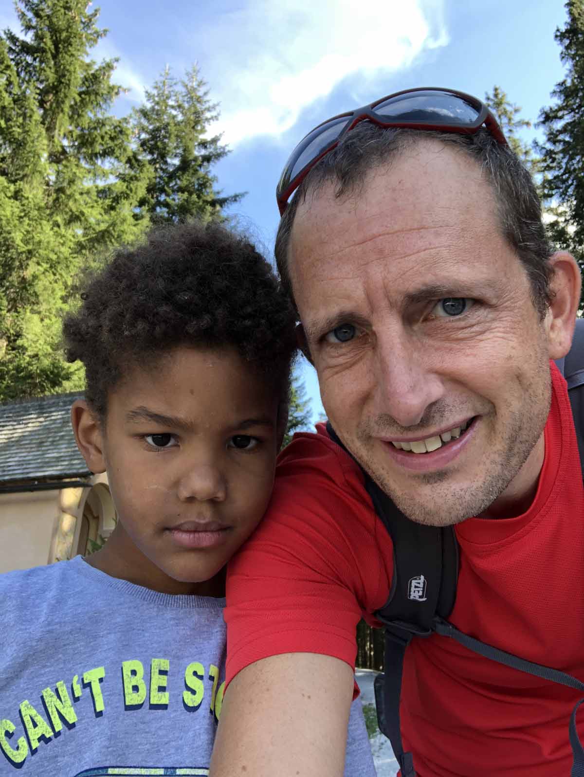 Die Stärkung ist auf jeden Fall wunderbar und wir genießen die Umgebung von der Sonnenterasse aus… auch wenn sich Diese nicht immer zeigen will. Dafür kann Letu von der hohen Kanzel aus unter uns die Kühe beobachten…