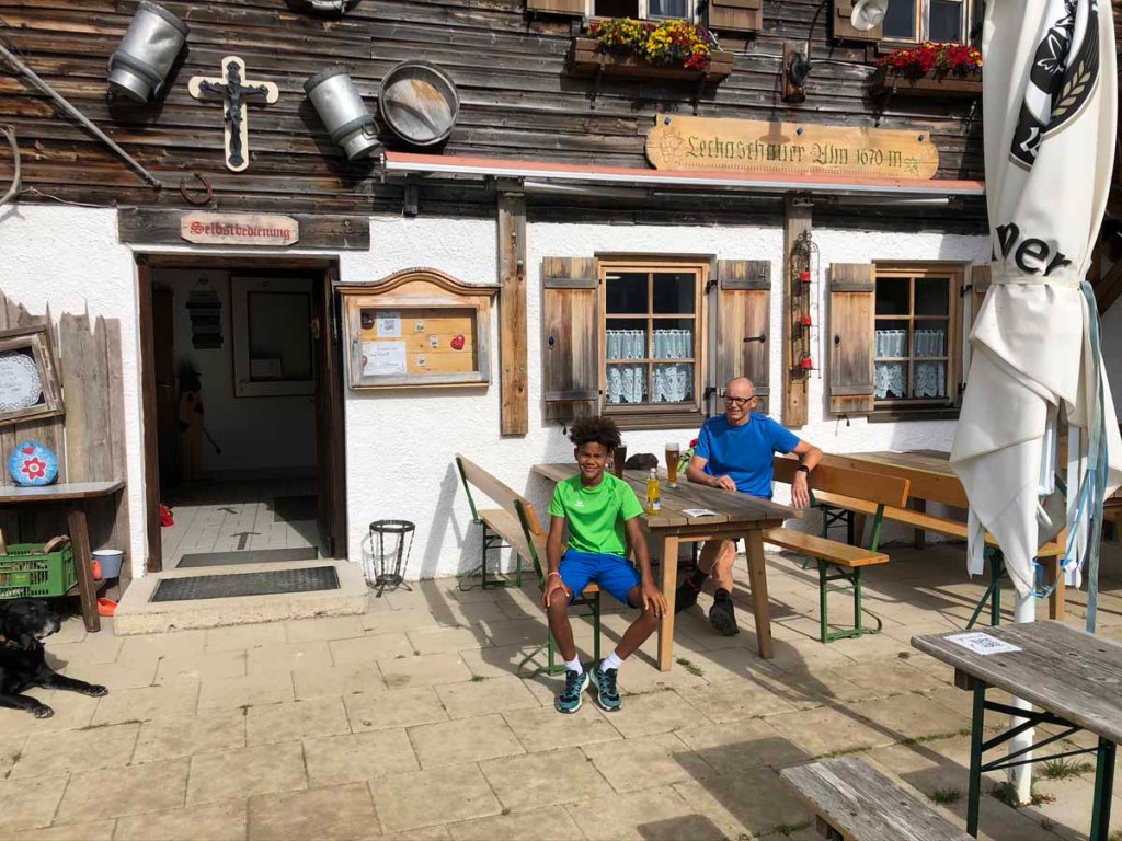 Bei einer Stelle mit nettem Bänklein machen wir eine kurze Trinkpause, im Anschluß kommt der steilste Teil der Tour auf uns zu.